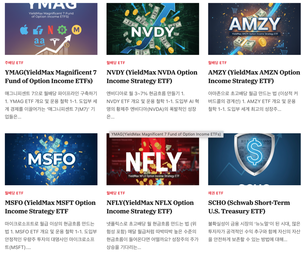 단순한 정보 제공을 넘어, 객관적인 데이터와 엄격한 장기 성과 검증 기준을 통해 투자자의 종목 선별 과정을 돕고 투자 의사결정의 질을 높이는 데 기여합니다. 특히 인컴형 ETF에 대한 심층적인 분석과 1년 이상의 차트 데이터를 바탕으로 한 큐레이션은 장기 보유를 목표로 하는 투자자들에게 신뢰할 수 있는 핵심 자료가 될 것입니다.