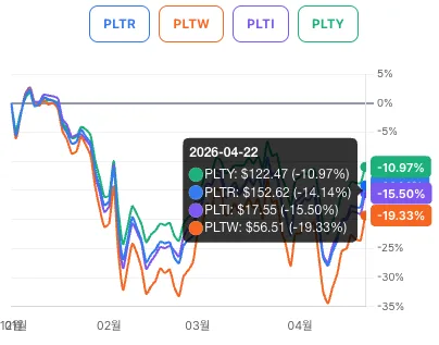 의견 : PLTR을 추종하는 경우 PLTY, PLTI 정도 주가를 따라간다 봐야겠네요.