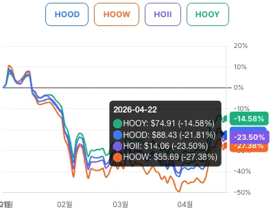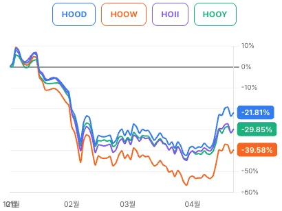의견 : HOOD을 추종하는 경우 HOOY정도 주가를 따라가로 HOII, HOOW는 조금 못미칩니다.