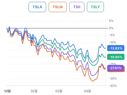 의견 : TSLA을 추종하는 경우 TSLY, 하락에서 그나마 TSII 정도 주가를 따라간다 봐야겠네요.