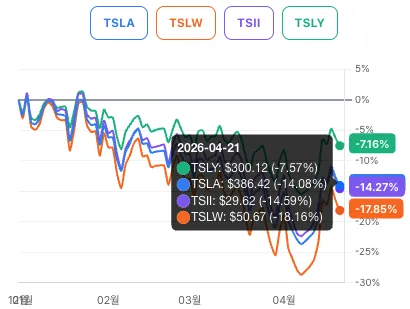 이차전지 캐즘의 여파로 테슬라 기초자산은 13.83% 하락했습니다.